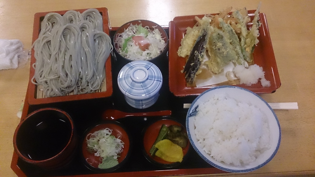 やんばるは田畑屋セットのそば大盛り+ご飯大盛りをオーダー。