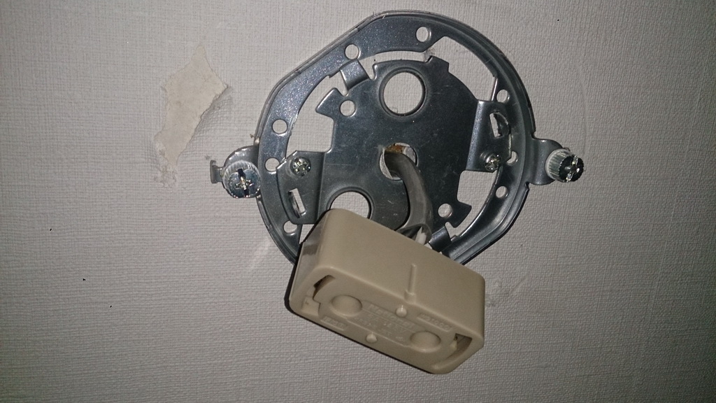 買ってきた当日、早速取り付けようと既存の照明を取り外してみたら、なんと!