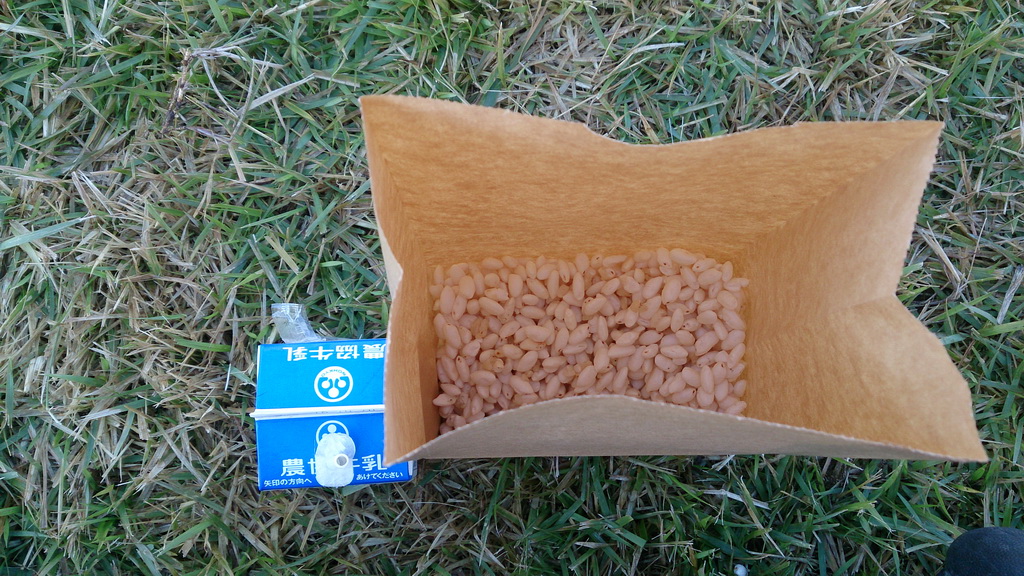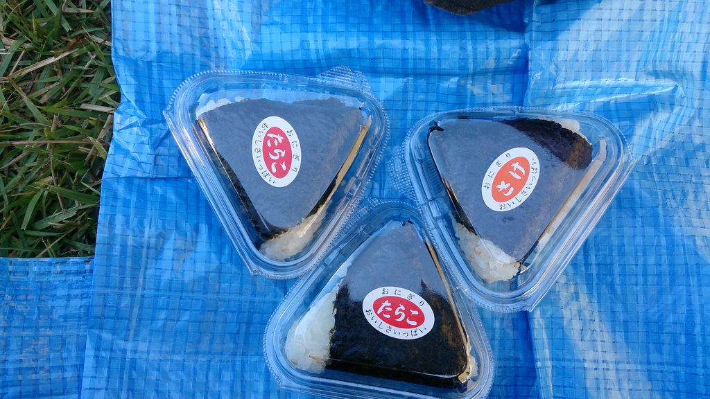 JAが出店している販売ブースで、新米コシヒカリのおにぎりが1個50円だということで、嫁が嬉しそうに買ってくる。