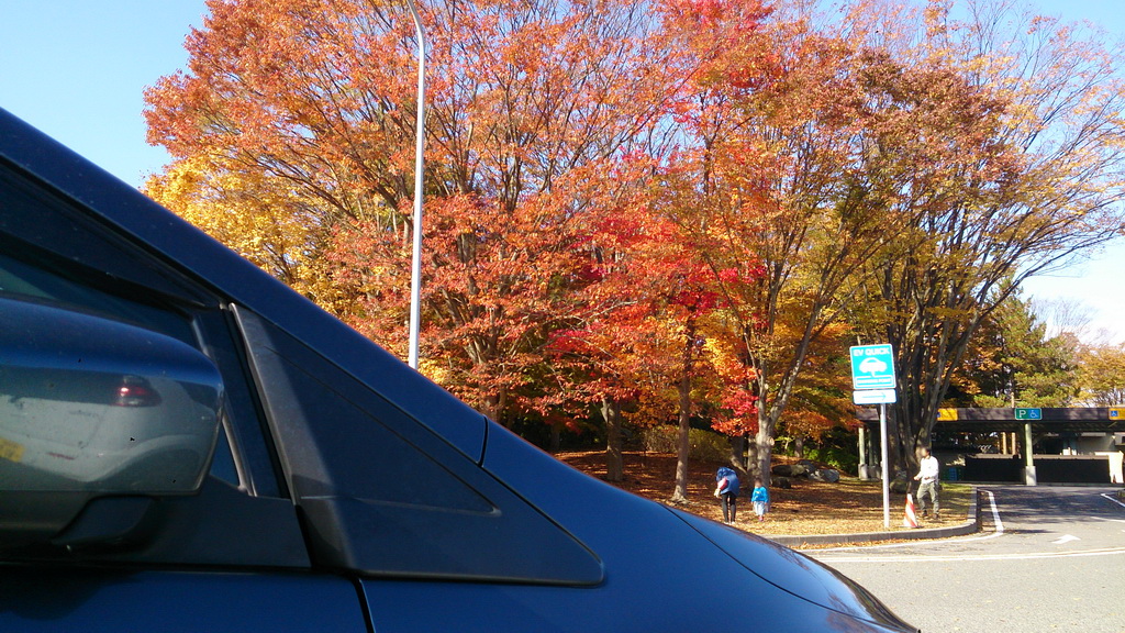 赤城高原SAで休憩しようとすると、見事に赤や黄色に染まったイチョウやモミジがっ!