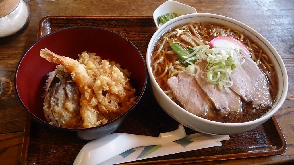 Cセットとは、ミニ天丼+ラーメンなんだけど、スポーツをやった後なので腹が減りまくり。