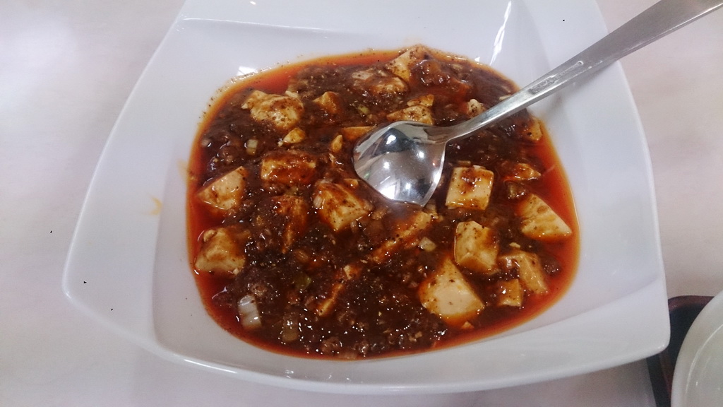 四川料理の麻婆らしく、山椒が凄くきいていて、舌先がしびれる。