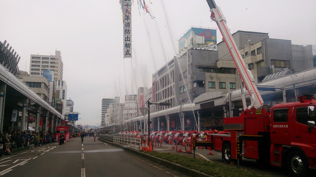 準備が完了し、爆竹の爆音とともに出初め式スタート!