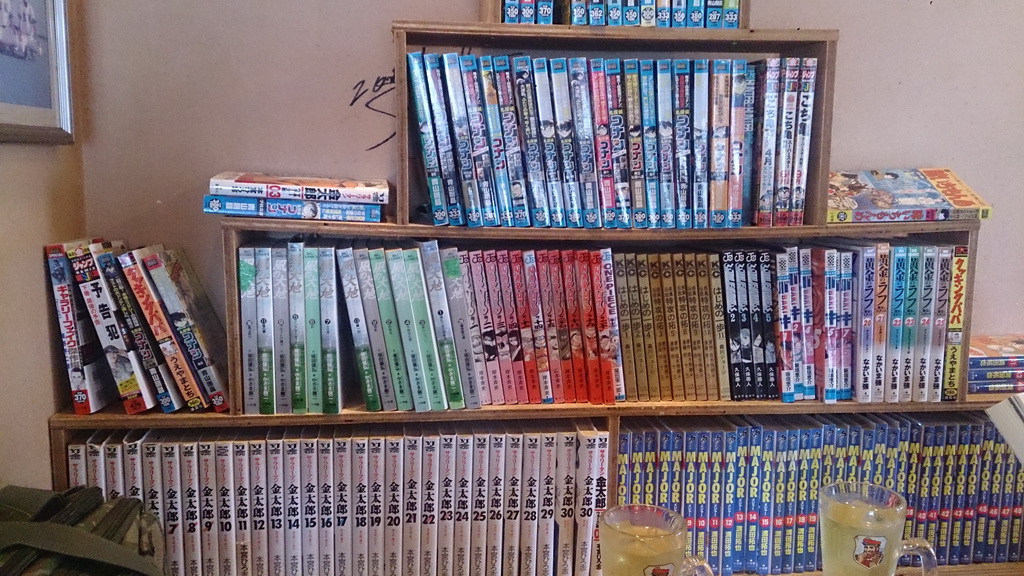 ネットの口コミでは、注文した物が来るまで大分時間がかかるという話なので、目の前の大量のコミックが詰まった自作本棚から何冊かチョイス。