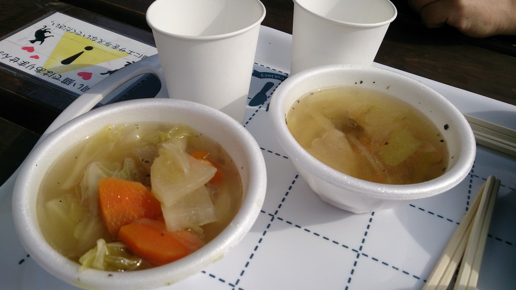 とゆーことで続いては、サイドメニューその1ということで、地元野菜の具だくさんスープ(スープバー)