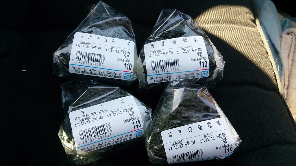 さっき立ち寄った、湯沢の『のぐち』で買ったおにぎり。ここのおにぎりは美味くて評判。