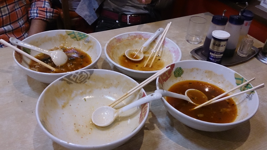 まずは、熱々の餡と水で締められた極太の麺をよーく混ぜる。そしておもむろに食います。ズズズッと音を立てながら食べると尚よろしい。ニンニク・ショウガが効いたピリ辛の餡が、食べても食べても食欲をそそります。もうね、