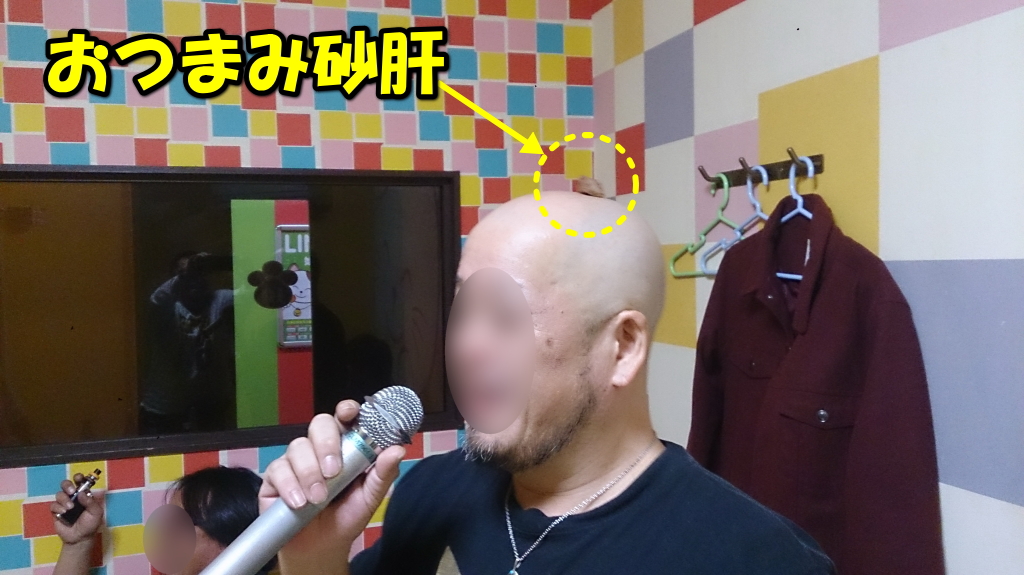 誰かが、二代目@親父さんの頭のてっぺんに砂肝をON!