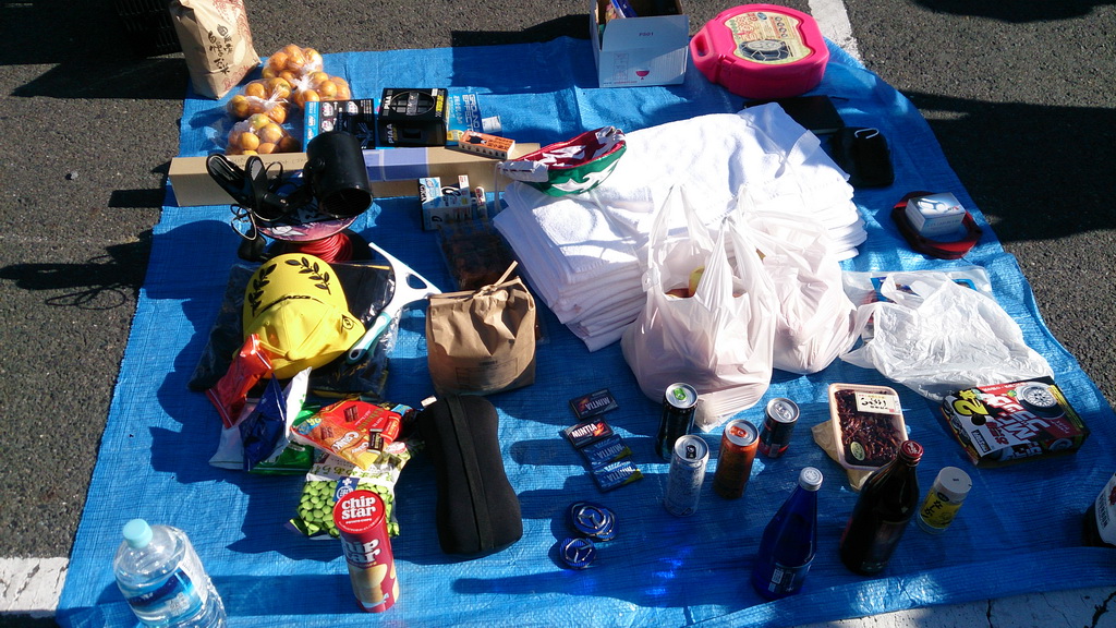そして何気にブルーシートを広げると、どこからともなくジャンケン大会の景品が集まり出す(笑)