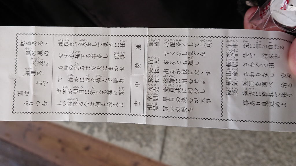 さて、お参りを終えた後はおみくじを引くんですが・・・
